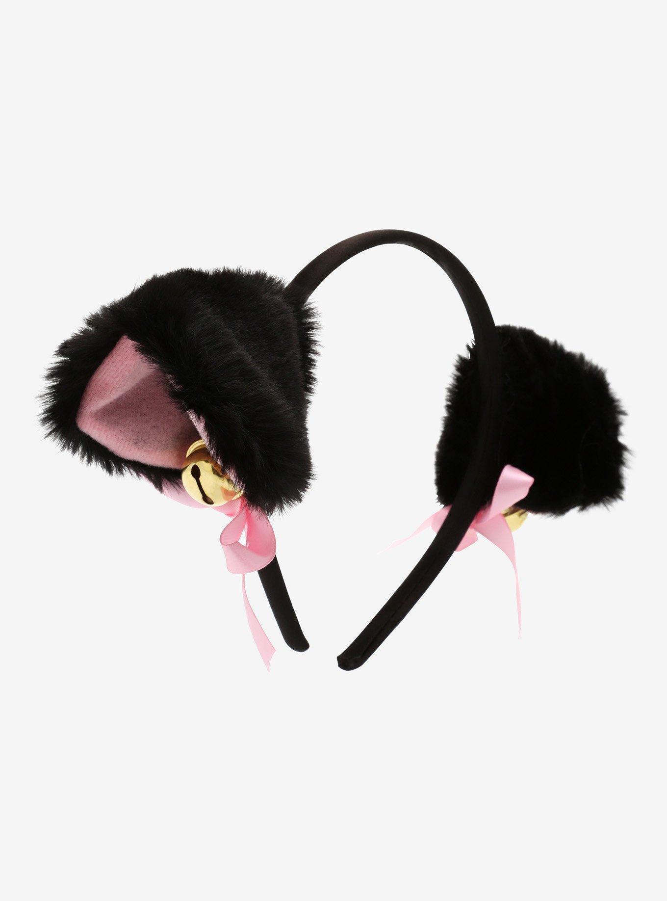 Black Pink Ribbon Bell Fuzzy Cat Ear Headband Hot Topic